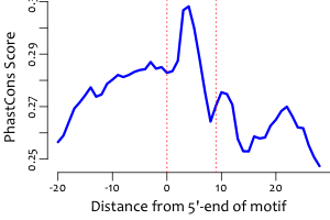 | Average position of motif in targets: | 318.0 +/- 240.3bp |
