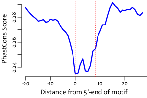 | Average position of motif in targets: | 333.3 +/- 246.6bp |