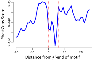 | Average position of motif in targets: | 319.7 +/- 250.5bp |