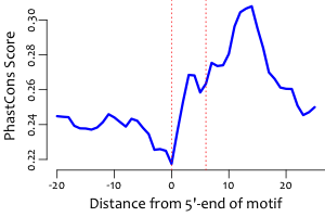 | Average position of motif in targets: | 309.2 +/- 234.3bp |
