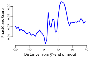 | Average position of motif in targets: | 319.5 +/- 234.6bp |