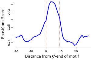 | Average position of motif in targets: | 321.1 +/- 242.8bp |