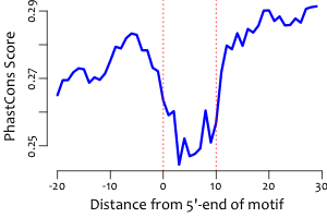 | Average position of motif in targets: | 326.3 +/- 240.1bp |