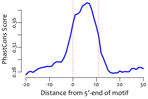 | Average position of motif in targets: | 316.5 +/- 234.4bp |