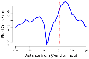 | Average position of motif in targets: | 327.7 +/- 248.1bp |