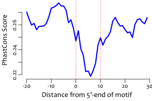 | Average position of motif in targets: | 317.3 +/- 234.1bp |