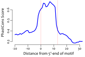 | Average position of motif in targets: | 307.5 +/- 220.3bp |