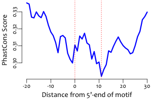 | Average position of motif in targets: | 353.0 +/- 269.8bp |
