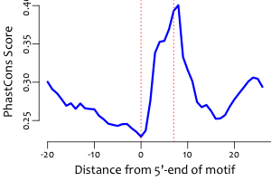 | Average position of motif in targets: | 296.9 +/- 227.0bp |
