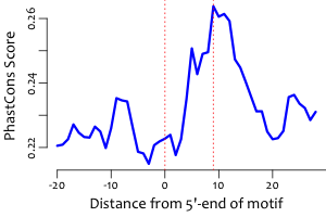 | Average position of motif in targets: | 326.1 +/- 251.0bp |
