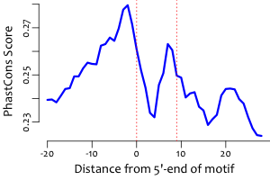 | Average position of motif in targets: | 322.6 +/- 252.3bp |