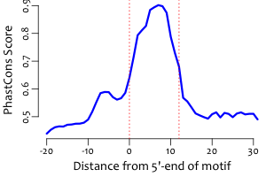| Average position of motif in targets: | 309.0 +/- 222.3bp |