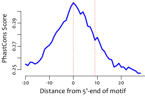| Average position of motif in targets: | 319.3 +/- 245.3bp |