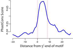 | Average position of motif in targets: | 203.2 +/- 89.6bp |