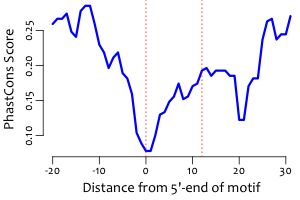 | Average position of motif in targets: | 211.8 +/- 111.0bp |