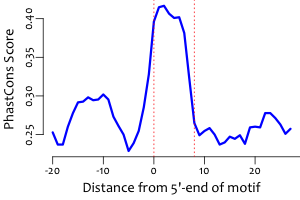| Average position of motif in targets: | 216.0 +/- 101.8bp |