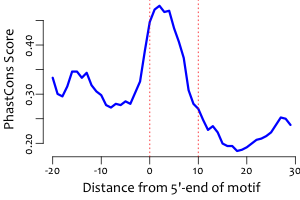 | Average position of motif in targets: | 184.1 +/- 101.4bp |