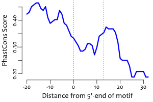 | Average position of motif in targets: | 188.3 +/- 118.7bp |