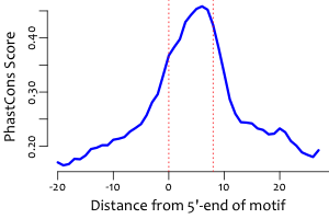 | Average position of motif in targets: | 222.7 +/- 83.3bp |