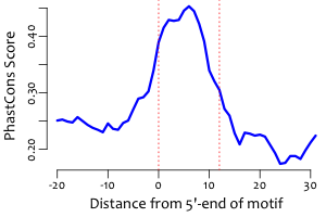 | Average position of motif in targets: | 222.4 +/- 98.0bp |
