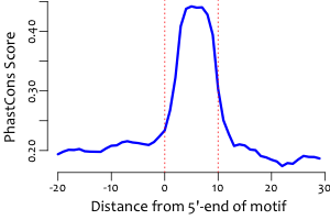 | Average position of motif in targets: | 197.5 +/- 70.3bp |