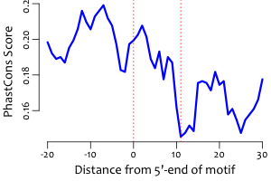 | Average position of motif in targets: | 196.8 +/- 92.3bp |