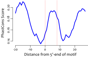 | Average position of motif in targets: | 196.7 +/- 104.3bp |