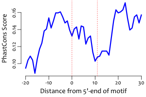 | Average position of motif in targets: | 187.9 +/- 104.8bp |