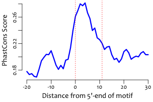 | Average position of motif in targets: | 198.1 +/- 101.3bp |