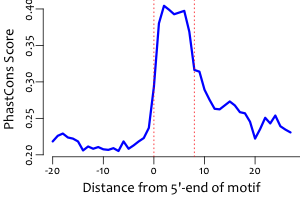 | Average position of motif in targets: | 207.3 +/- 84.1bp |