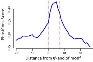 | Average position of motif in targets: | 202.9 +/- 102.6bp |