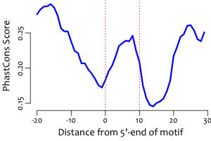 | Average position of motif in targets: | 199.9 +/- 101.8bp |