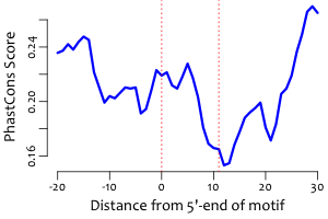 | Average position of motif in targets: | 212.4 +/- 100.4bp |