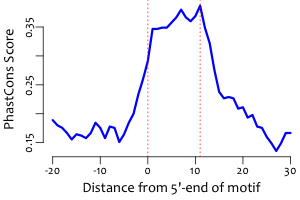 | Average position of motif in targets: | 232.6 +/- 93.3bp |