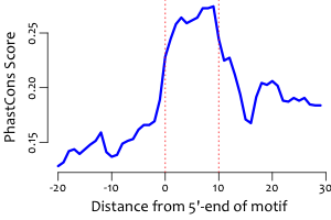 | Average position of motif in targets: | 218.5 +/- 101.5bp |