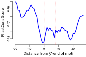 | Average position of motif in targets: | 203.1 +/- 109.8bp |