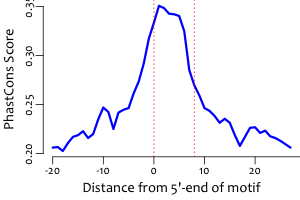 | Average position of motif in targets: | 214.0 +/- 97.6bp |