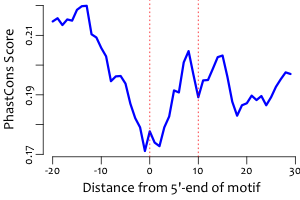 | Average position of motif in targets: | 203.9 +/- 110.0bp |