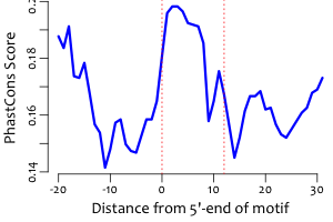 | Average position of motif in targets: | 199.8 +/- 108.8bp |