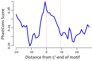 | Average position of motif in targets: | 219.6 +/- 91.2bp |