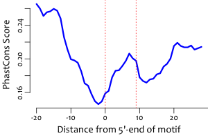 | Average position of motif in targets: | 199.9 +/- 100.8bp |