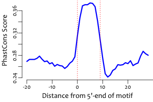 | Average position of motif in background: | 196.9 +/- 115.5bp |