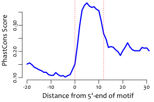 | Average position of motif in targets: | 204.0 +/- 88.3bp |