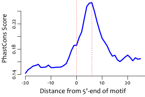 | Average position of motif in targets: | 199.9 +/- 107.4bp |