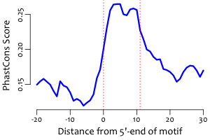 | Average position of motif in targets: | 199.9 +/- 109.7bp |