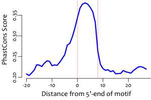 | Average position of motif in targets: | 197.8 +/- 108.6bp |