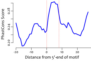 | Average position of motif in targets: | 189.5 +/- 114.6bp |
