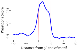 | Average position of motif in targets: | 199.7 +/- 86.5bp |