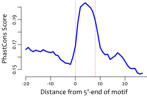 | Average position of motif in targets: | 201.8 +/- 93.8bp |