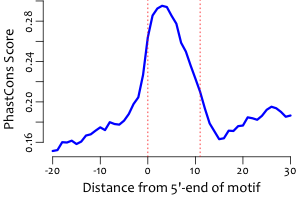 | Average position of motif in targets: | 195.5 +/- 102.6bp |